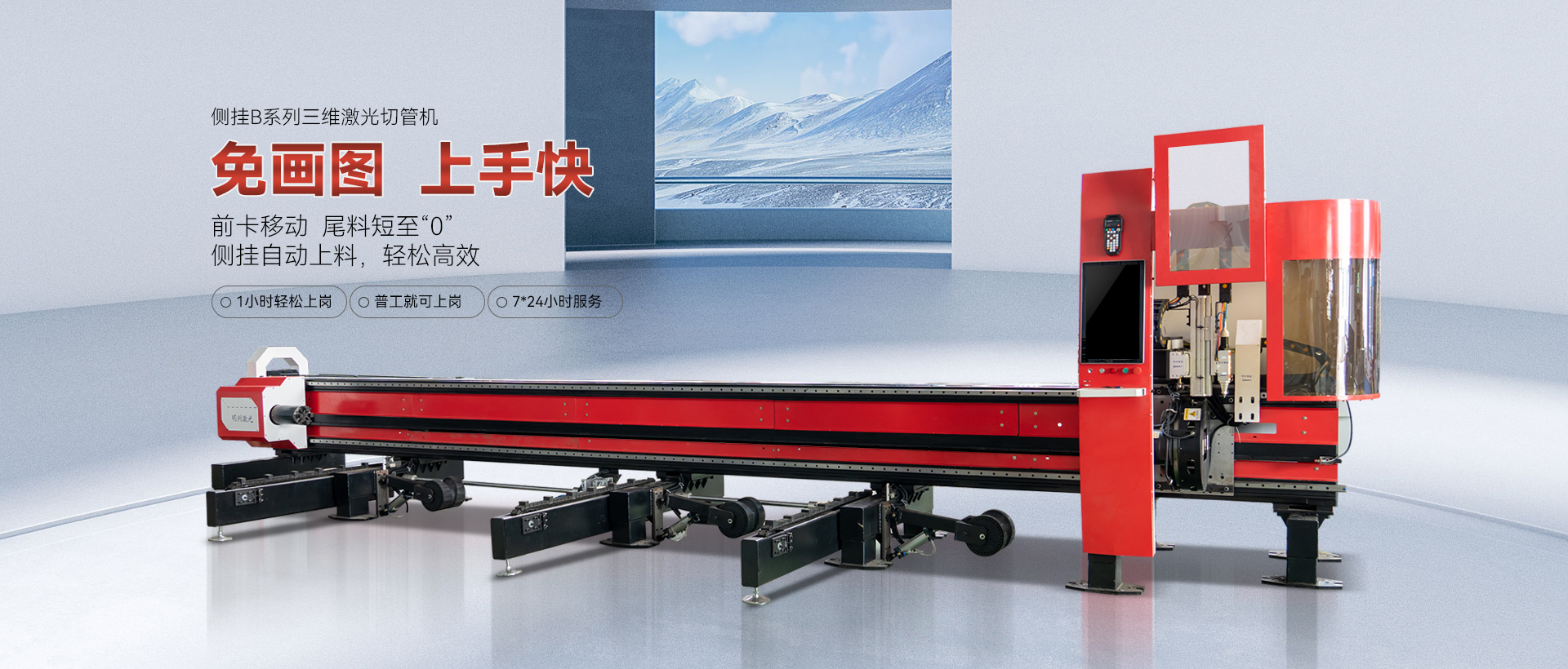 上料快上料方式創新:明州智能率先推出人 工上料時從前面自動拉料進料的方式。