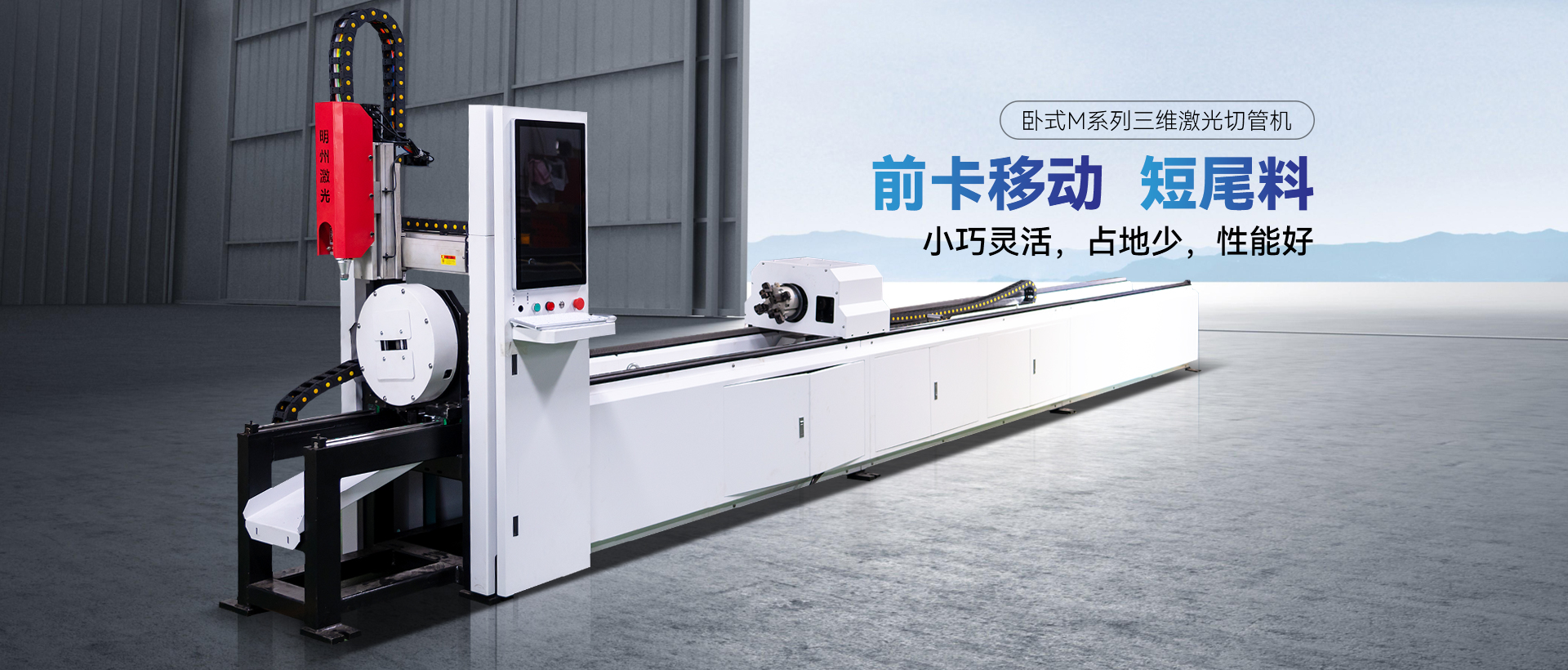 明州智能提出從前面自動拉料,以后 卡為原點計算切割,標準雙卡機的最 后一斷后卡到槍頭的尺寸小于產品成 品尺寸時即可算做成品,實現“零” 尾料,有效提高材料利用率與加工效 率。