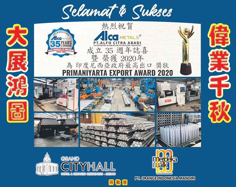 祝賀ALCA成立35周年并獲得2020年為印度尼西亞政府最高出口獎,并對ALCA金屬公司全體同仁為公司發展壯大付出辛勤努力和做出卓越貢獻,表示由衷的敬佩和崇高的敬意! 祝愿ALCA金屬公司未來的創新不止、揚帆起航、我相信ALCA金屬公司一定會繼續穩步、持續、健康的發展!