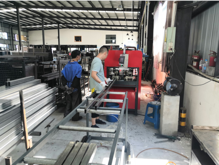 四川優展貨架設備有限公司與佛山明州機械數控沖孔機廠家合作,看中了佛山明州機械有著多家使用案例,對廠區的管理模式和模具生產車間顯著。模具都是獨立的加工車間。貨架機械沖孔的效率也非常高,一次可以同時沖4條貨架管。