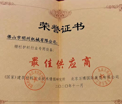 捷報頻傳!明州機械喜獲“柵欄護欄行業(yè)專用設(shè)備最佳供應(yīng)商”大獎